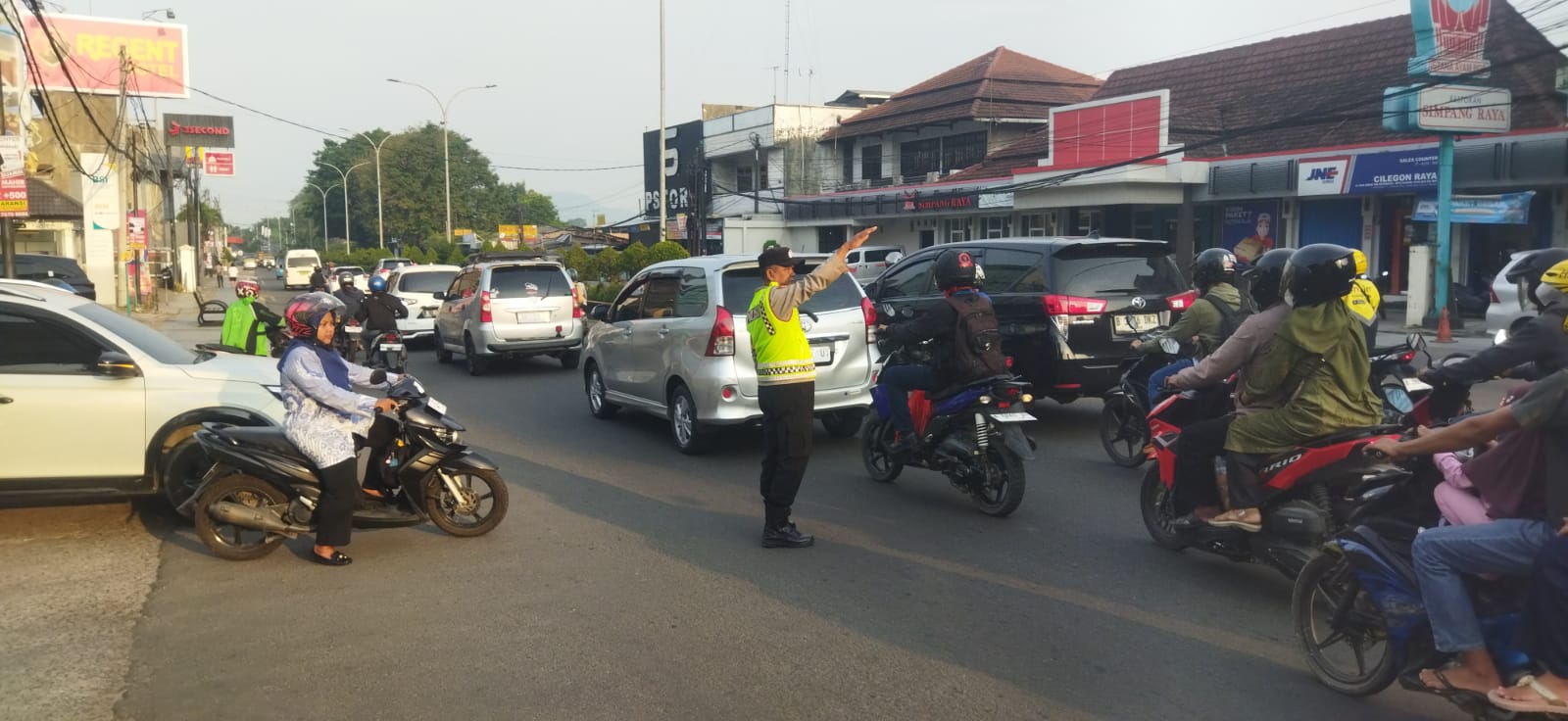 Personel Polsek Cilegon melaksanakan kegiatan strong point pagi dengan melakukan pengaturan arus lalu lintas di salah satu ruas jalan utama Kota Cilegon, guna mengantisipasi kepadatan kendaraan.Berdasarkan pantauan di lapangan, petugas kepolisian tampak sigap mengatur arus kendaraan roda dua dan roda empat, kehadiran polisi di tengah persimpangan bertujuan untuk memberikan rasa aman, nyaman, serta menjaga kelancaran...