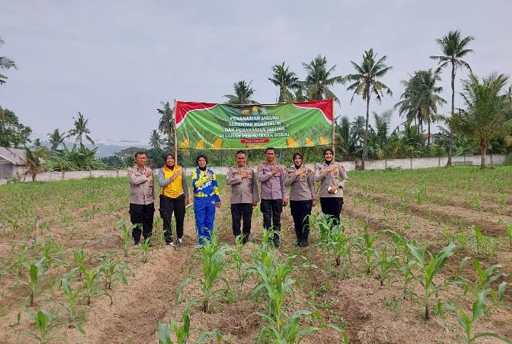 Personel Polsek Pulomerak Tanam jagung berkolaborasi dengan kelompok tani lebakgede