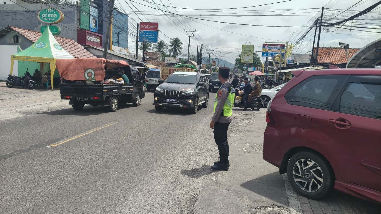 Personel Polres Cilegon Laksanakan Pengaturan Lalu Lintas di Jalur Padat