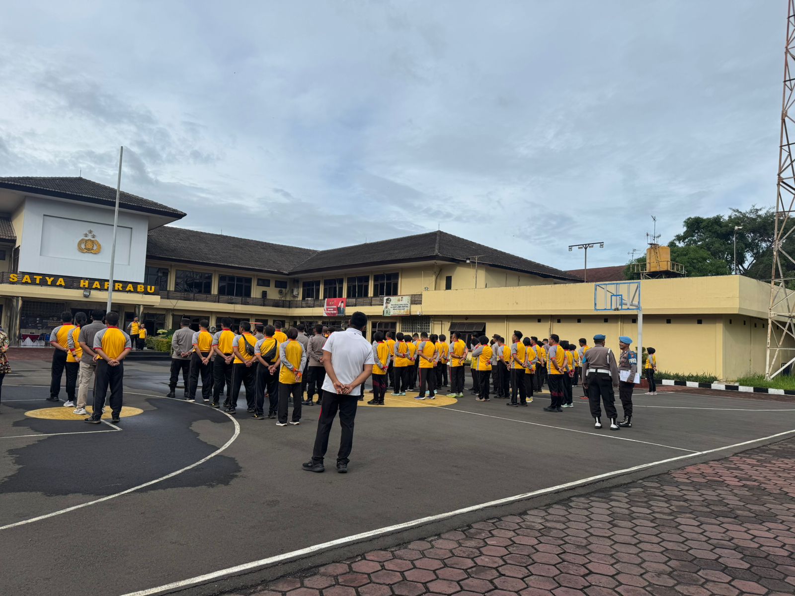 Apel Pagi antisipasi untuk menjaga kepada tetap dalam rangka penguatan dan penjagaan ketat markas polsek pulo ampel oleh anggota