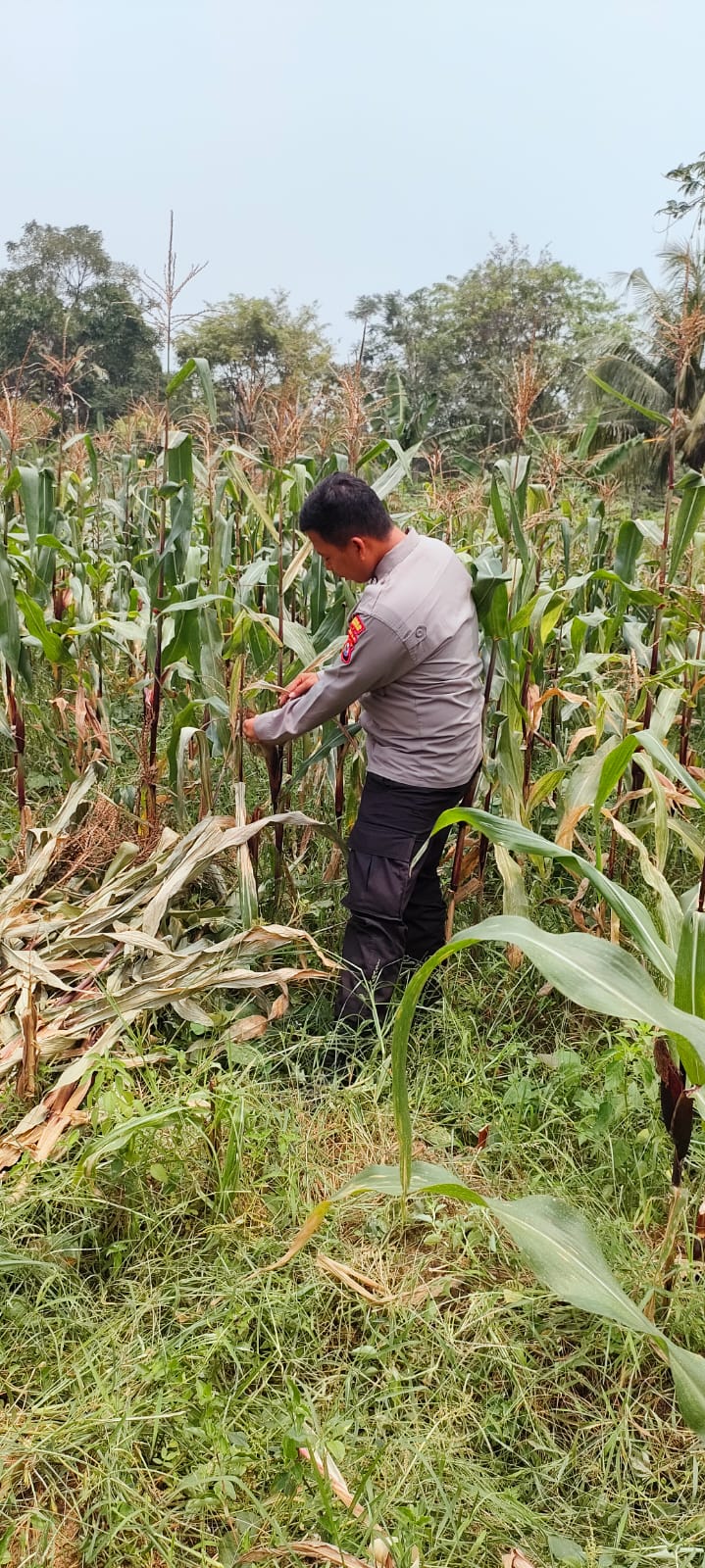 -POLRES CILEGON- Polda Banten. Personil Bhabinkamtibmas Bripka Agustoni bersama bersama warga binaanya Melaksanakan Panen Jagung Dalam Rangka Mendukung Program Ketahanan Pangan Pemerintah dengan Cek Tanaman jagung di JL.Oxsigen Komplek Perumahan KS Kelurahan Kotabumi Kecamatan Purwakarta Kota Cilegon.Jumat.(03-10-2025)
