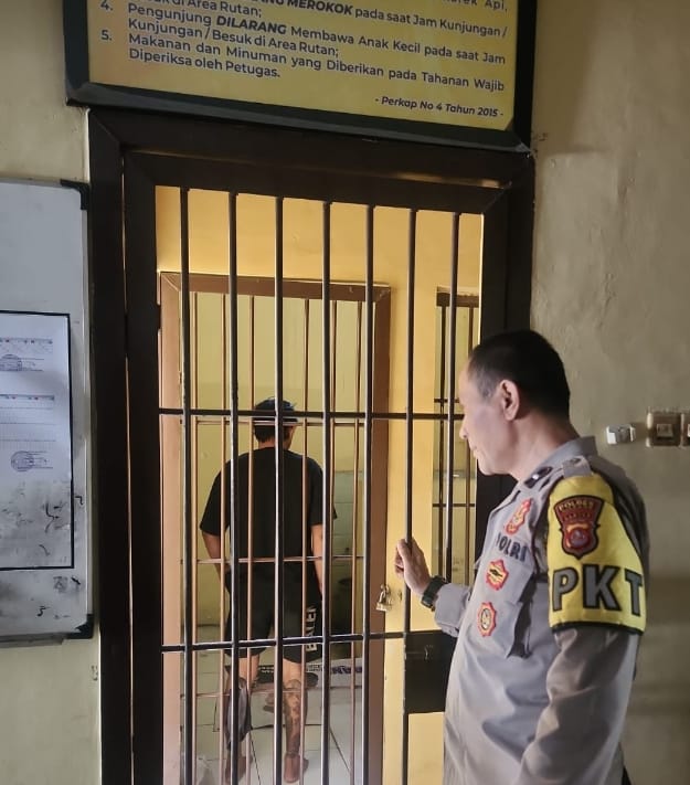 Personil Piket jaga Cek dan kontrol ruang tahanan Polsek Purwakarta