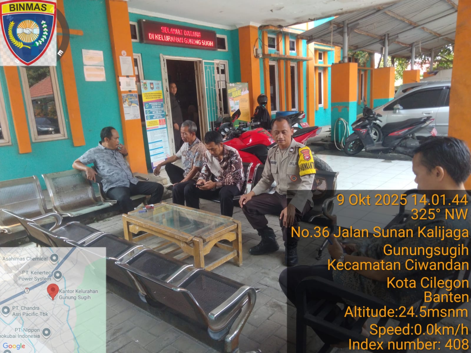 Cilegon –  Bhabinkamtibmas Polsek Ciwandan Polres Cilegon Polda Banten yaitu dengan menyambangi kantor Kelurahan binaannya guna membantu dan memantau langsung proses Pelayanan Masyarakat, Kamis (09/10/2025).