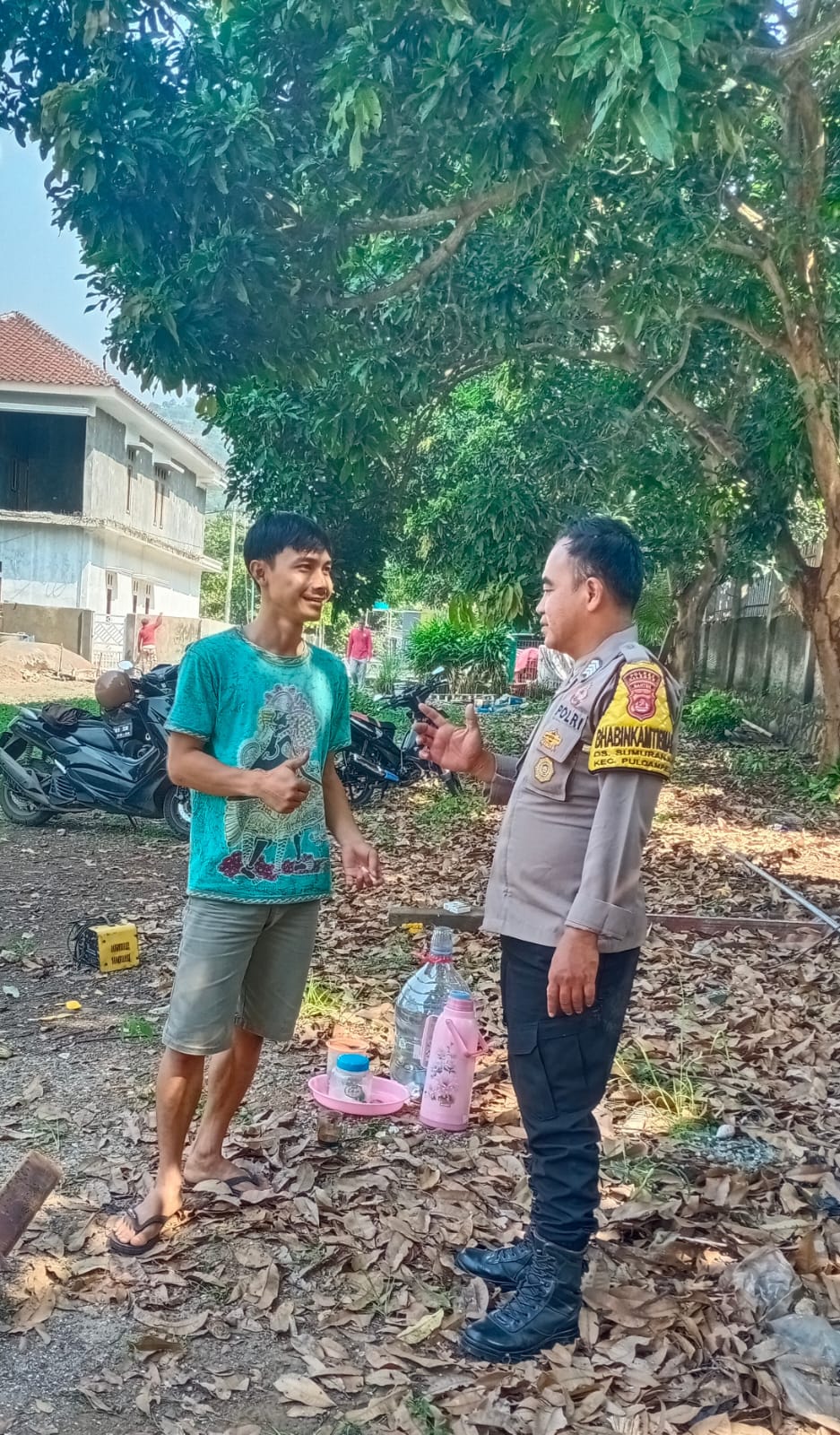 Bhabinkamtibmas Desa berkesinambugan untuk menjaga warganya mengajak untuk berbincang-bincang yang menyangkut kepentingan