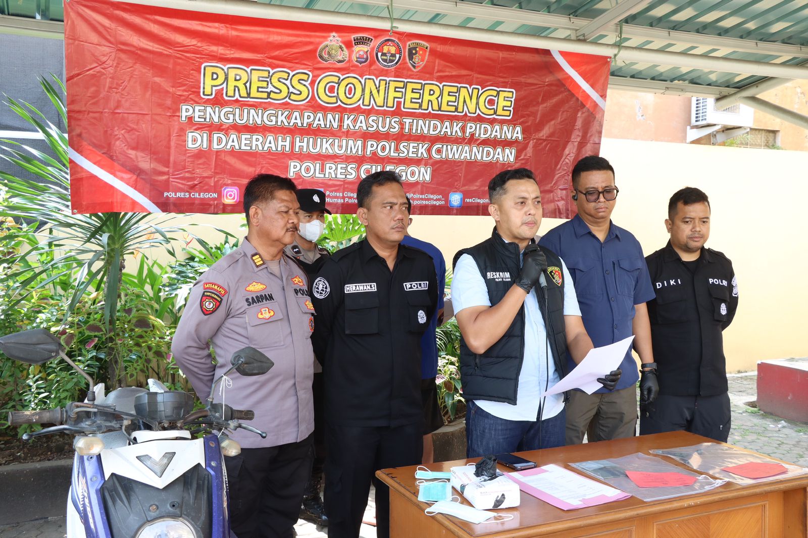 IPDA Muhamad Suharya  S.H. selaku Panit 2 unit Reskrim Polsek Ciwandan Polres Cilegon Polda Banten menjelaskan pada saat press confrence pelaku pencurian sepeda motor sudah melakukan aksinya sudah berulang kali dan baru kali ini ditangkap,pelaku A (32) Kp. Nagreg Ds. Siketug Kec. Ciomas Kab. Serang.