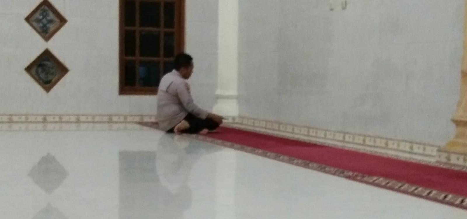 Iptu Sukesi Kanit Binmas dan Brigadir Chairuman Bhabinkamtibmas Desa Mekarjaya Subuh Berjamaah di Masjid Jami Hidayatul Mustaqim
