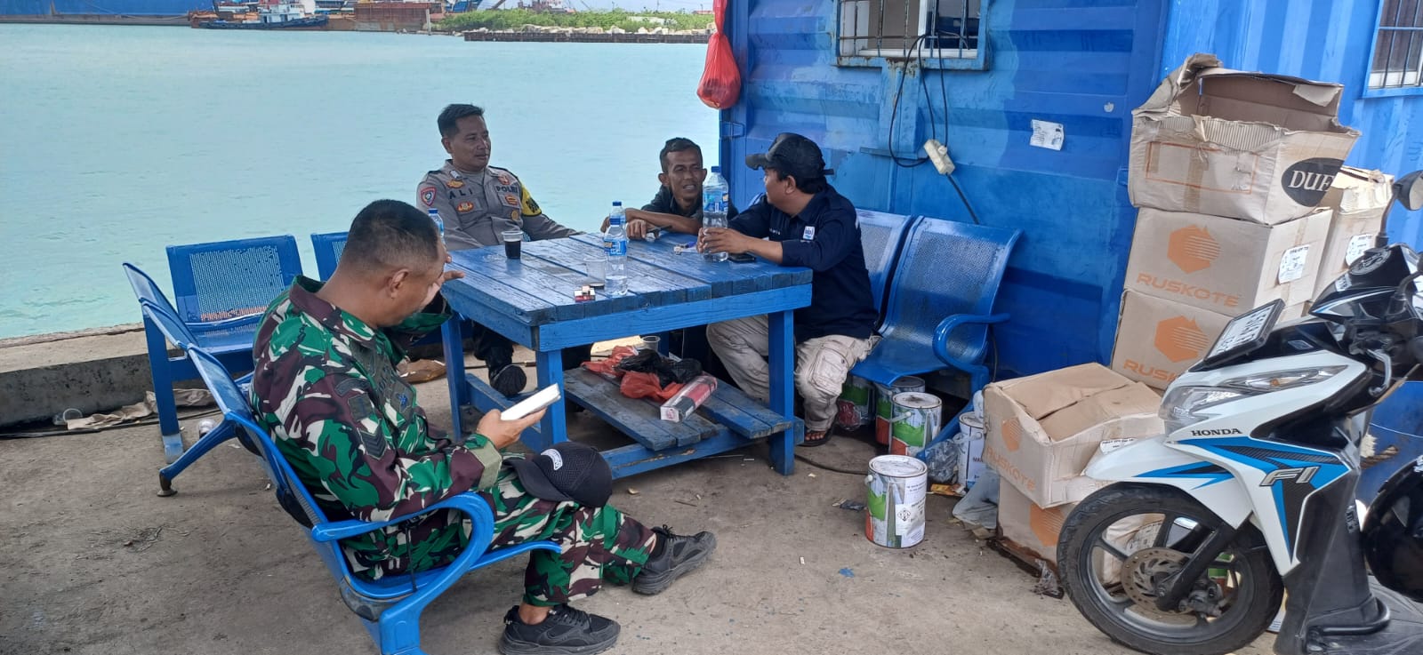 Jalin Silaturahmi, Bhabinkamtibmas Pelabuhan Polsek KSKP Banten berbincang ke Buruh Pelabuhan