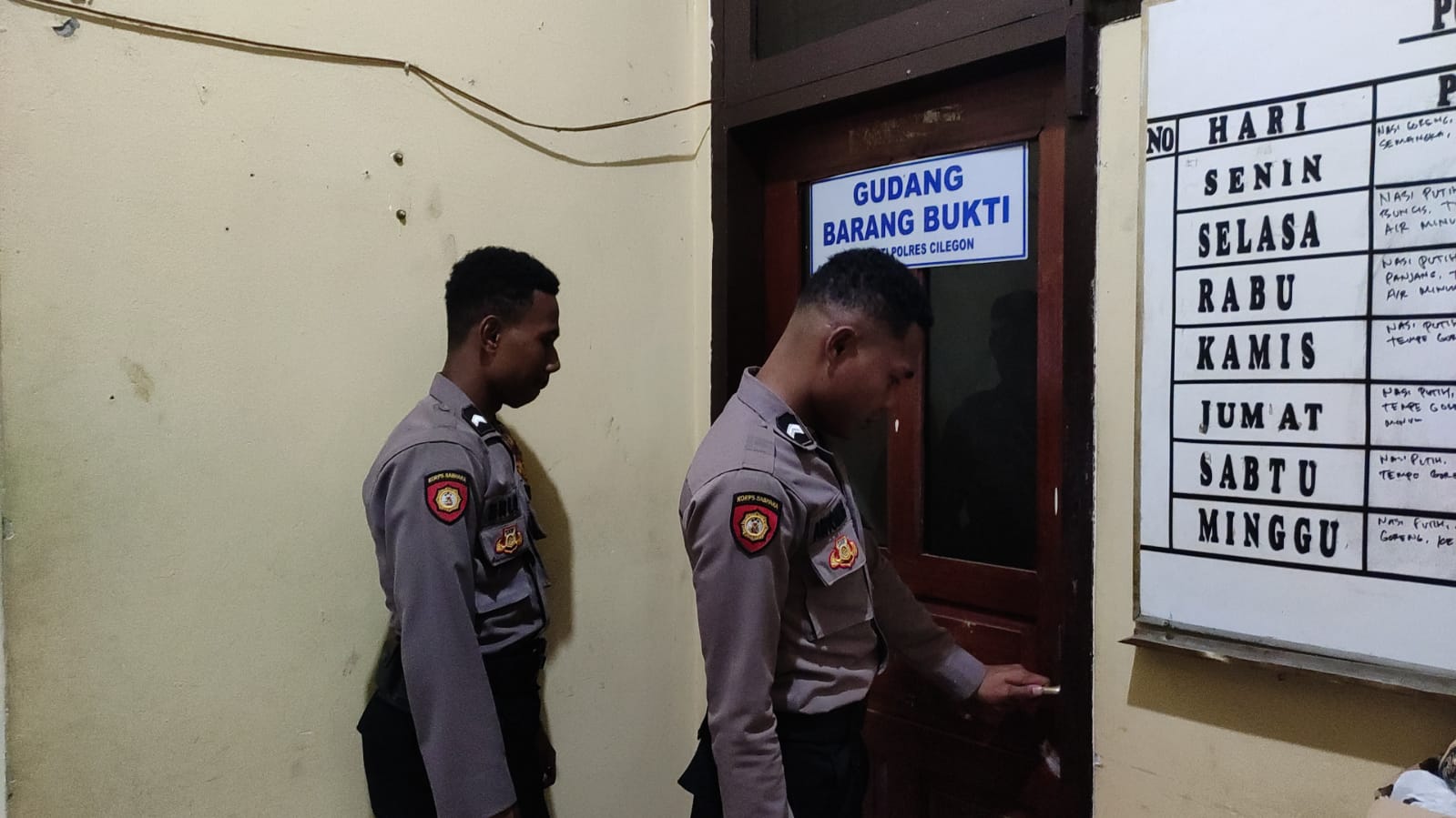 Anggota Piket Tahti Polres Cilegon Harus Melakukan Kegiatan Rutin Pengecekan Kelengkapan dan Barang Bukti Di Gudang Barang Bukti.