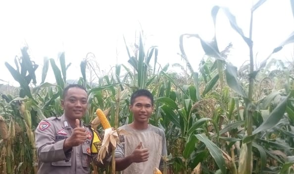 GIAT BHABINKAMTIBMAS POLSEK PURWAKARTA LAKUKAN PENDAMPINGAN PANEN JAGUNG HIBRIDA