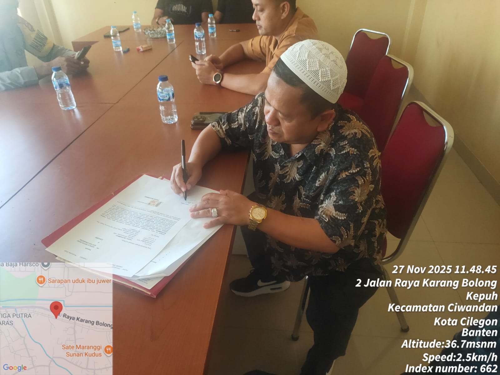 Dan untuk menguatkan kesepakatan tersebut Kedua belah pihak membuat surat kesepakatan bersama dihadapan Bhabinkamtibmas Kelurahan Gunung Sugih Polsek Ciwandan Polres Cilegon Polda Banten, terangnya