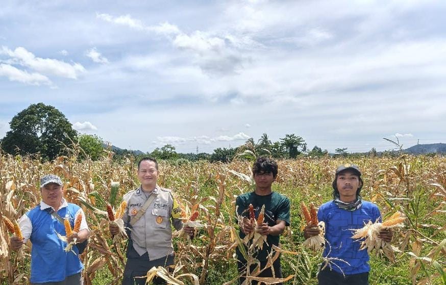Giat Bersama Poktan Anggota Polsek Anyar Melaksanakan Panen Jagung