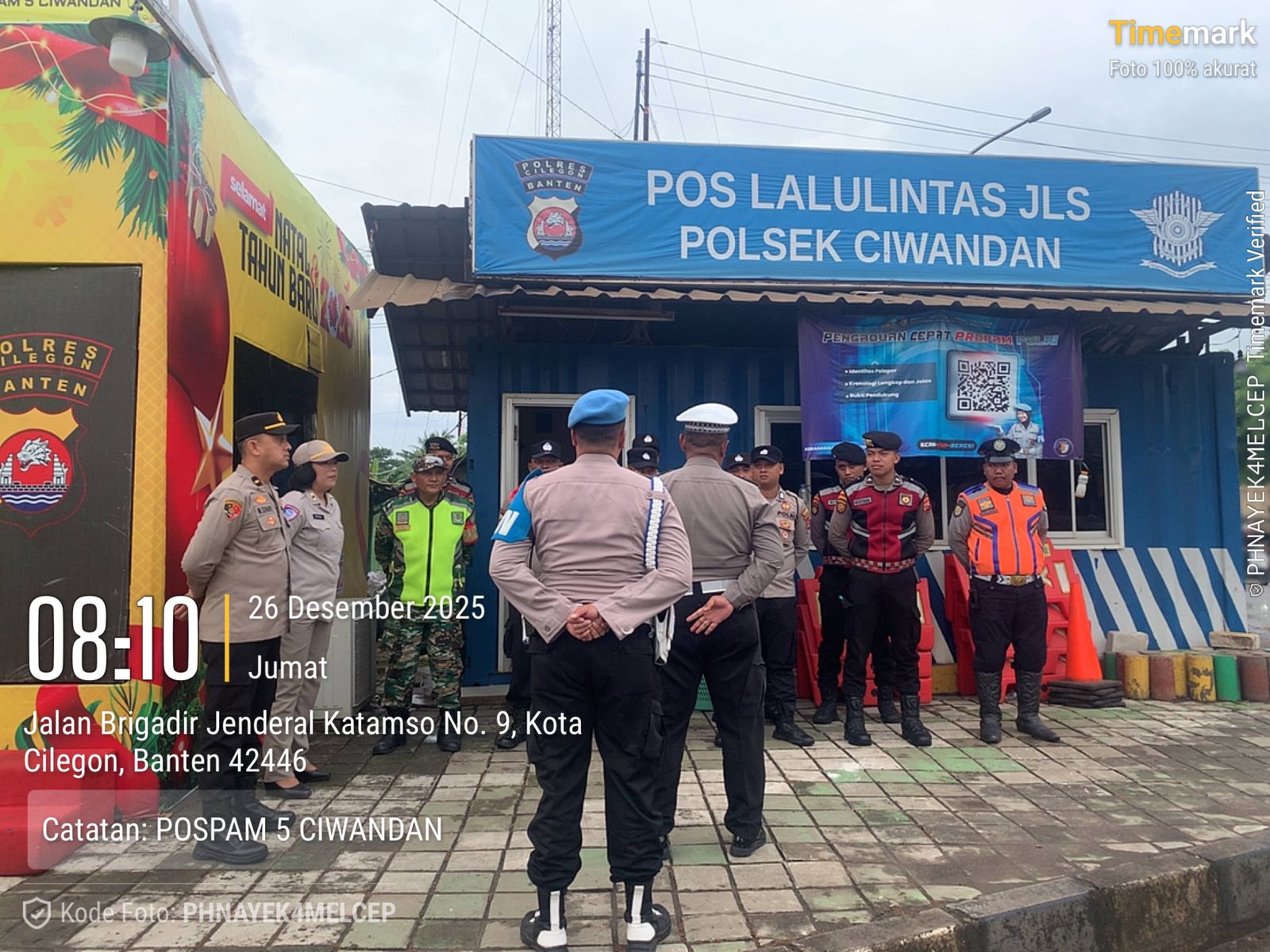 Cilegon - Personil Pospam 5 Ciwandan Polsek Ciwandan Polres Cilegon Polda Banten melaksanakan Apel Kesiapan Pelaksanaan kegiatan pengamanan Arus Lalu-lintas Wisata Dalan Operasi Lilin Maung 2025, Jum'at (26/12/2025).