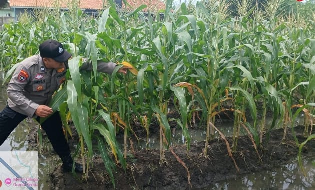 -Polres Cilegon–Polda Banten. Personil Bhabinkamtibmas Aiptu Daryo.E melaksanakan kegiatan pendampingan serta pemeriksaan pertumbuhan tanaman jagung di wilayah kerja Kapolsek Purwakarta, dalam rangka mendukung program ketahanan pangan yang digalakkan pemerintah.Minggu.(04-01-2026).