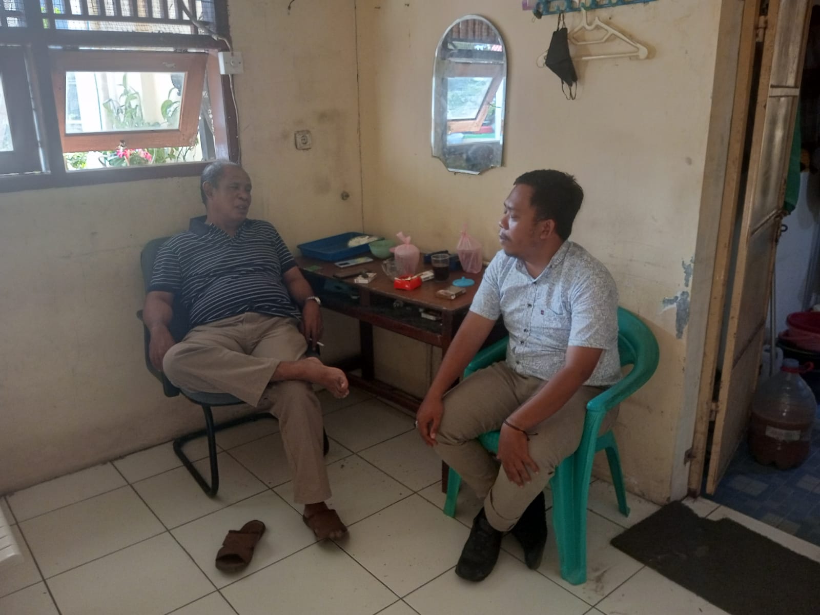 Personil sat intelkam melakukan koordinasi dengan tokoh masyarakat kec. Bojonegara kabupaten serang.