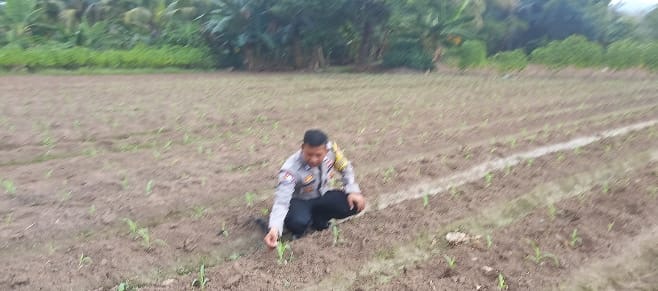 Personil Polsek Purwakarta Bhabinkamtibmas Kelurahan Kota bumi Laksanakan Pendampingan Cek Pertumbuhan Tanaman Jagung, Dukung Ketahanan Pangan