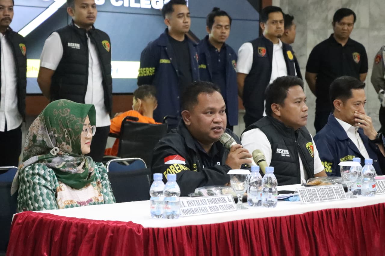 Press conference tersebut disampaikan oleh Ditreskrimum Polda Banten Kombes Pol Dian Setyawan didampingi Kapolres Cilegon AKBP Dr. Martua Raja Taripar Laut Silitonga, Plh. Kabid Humas Polda Banten AKBP Meryadi, Wakapolres Cilegon Kompol Arief Nazarudin, Kasubdit Jatanran Ditreskrimum Polda Banten Kompol Yeremia Iwo, Kasat Reskrim Polres Cilegon AKP Yoga Tama, Ka Instalasi Forensik Modikolegal RSUD Cilegon Dr. Baeti Adhayati SP FM, Puslabfor Polri Kompol Irfan Rofik.