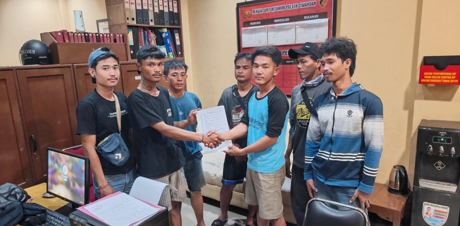 Dan untuk menguatkan kesepakatan tersebut Kedua belah pihak membuat surat kesepakatan bersama dihadapan Bhabinkamtibmas Kelurahan Samangraya Polsek Ciwandan Polres Cilegon Polda Banten, terangnya
