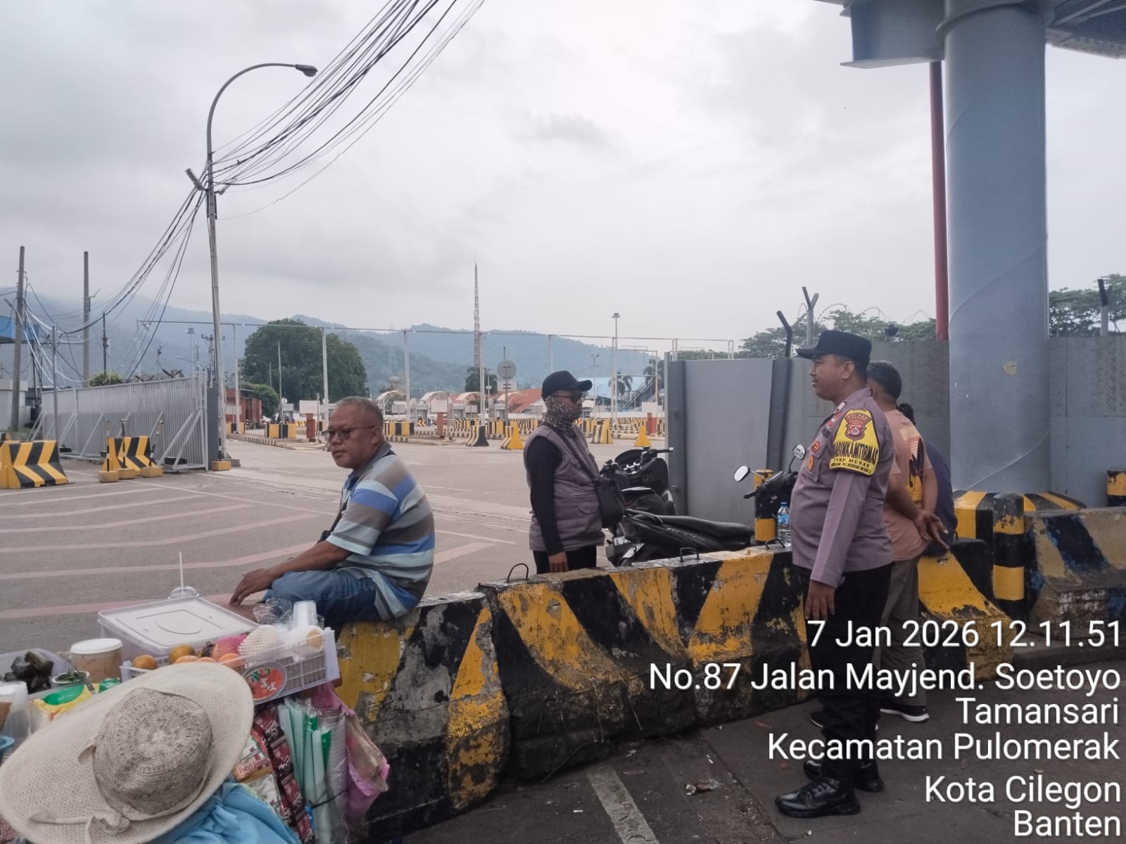 Cilegon - Personel Polsek Kskp Merak Polres Cilegon Polda Banten melaksanakan sambang dan patroli kawasan pelabuhan merak dalam rangka menjaga Harkamtibmas di Kawasan Pelabuhan Merak, Rabu (07/01/2026).