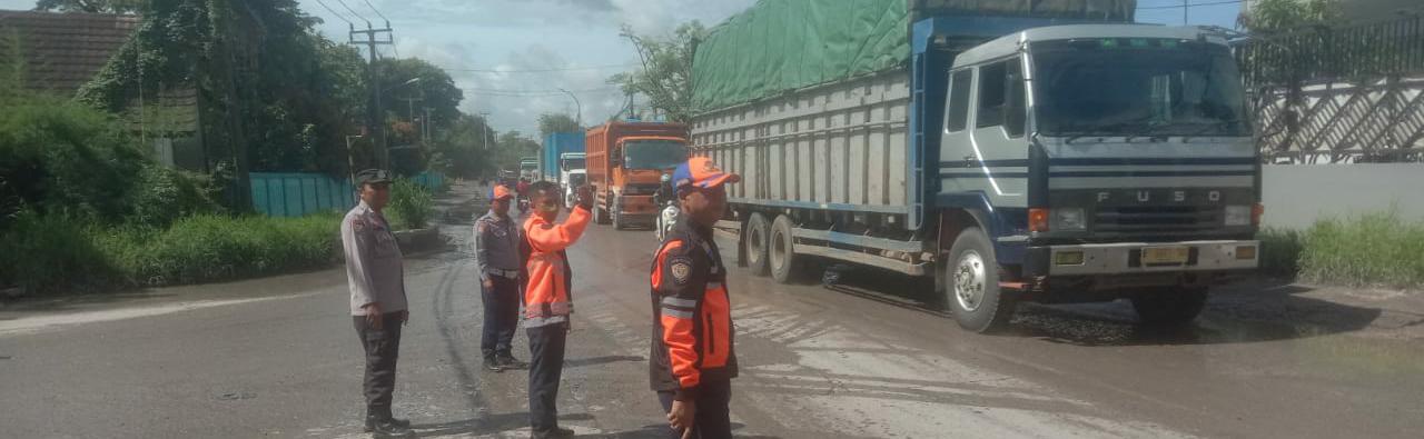 Demi Kelancaran Lalin, Bripka Leo & Dishub Laksanakan atur Lalin Di Jalan Raya PT SMI Bojonegara