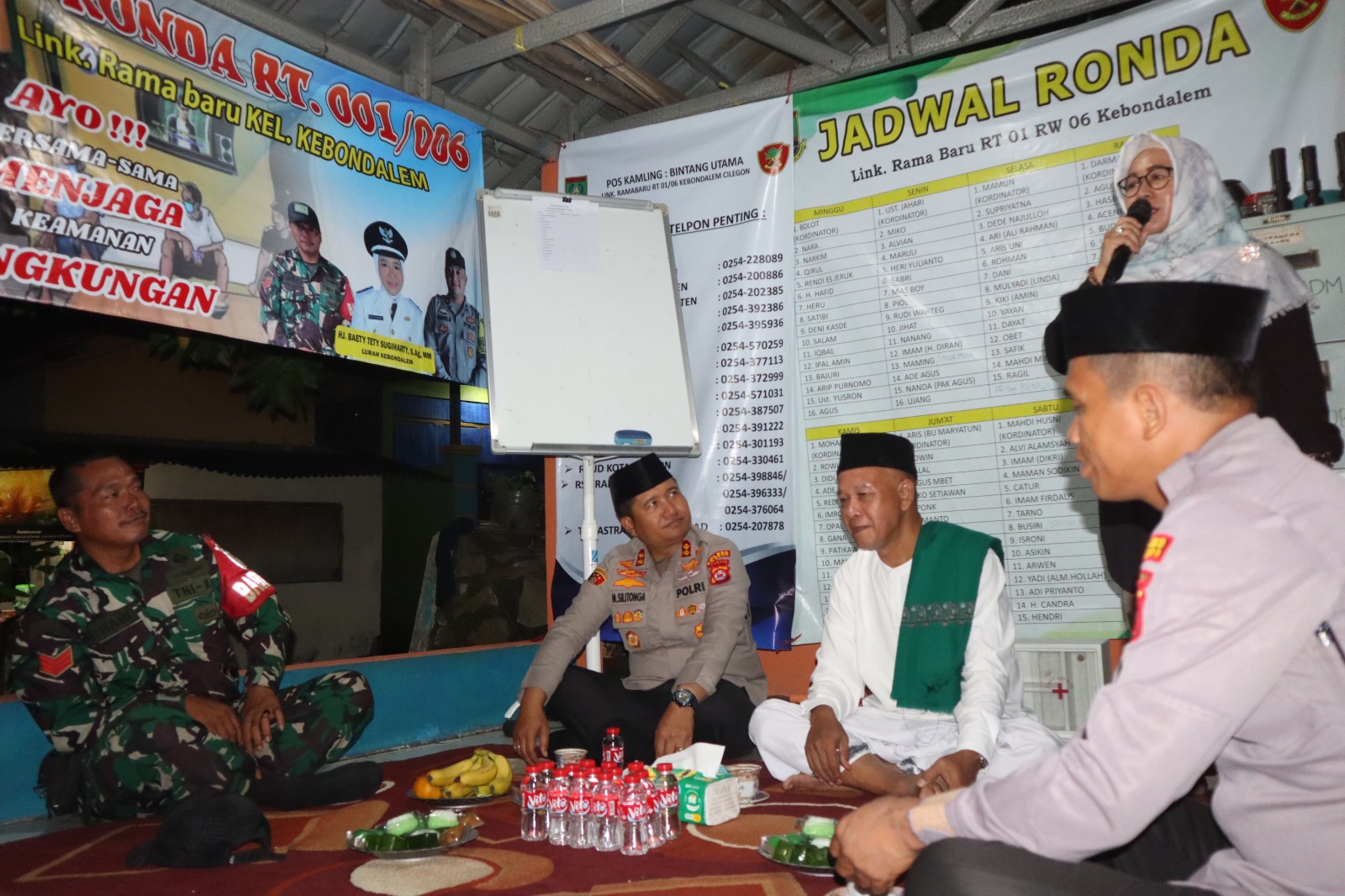 Dalam sambutannya, Lurah Kebondalem menyampaikan rasa terima kasih atas kunjungan tersebut. Ia menjelaskan bahwa hampir setiap RT di wilayahnya memiliki pos ronda yang dibangun secara swadaya, sebagai bukti kepedulian warga terhadap keamanan lingkungan.