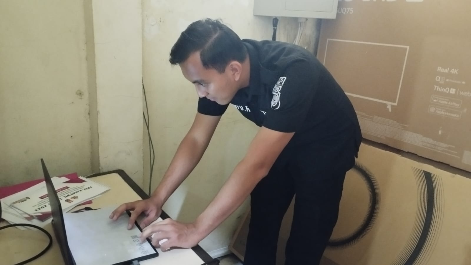 Anggota Tik Polres Cilegon Menyiapkan Sarana dan Prasarana Untuk Kegiatan Zoom meeting Dalam pelaksanaan kegiatan zoom meeting tersebut anggota TIK Polres Cilegon yang bertanggung jawab untuk menyiapkan peralatan zoom. Selain itu agar di tidak ada gangguan jaringan sebelum pelaksanaan anggota TIK melakukan pemeriksaan terhadap sarana dan prasarana tersebut . Satu jam sebelum kegiatan zoom meeting itu dimulai. Kapolres Cilegon AKBP. DR. MARTUA RAJA TARIPAR LAUT SILITONGA. melalui Kasi TIK AIPTU Suwanto, S.H. menyampaikan bahwa “untuk menunjang kelancaran penyampaian informasi anggota TIk Polres Cilegon selalu memeriksa sarana dan prasarana tersebut, sebelum maupun pada saat pelaksanaan akan selalu di monitor”