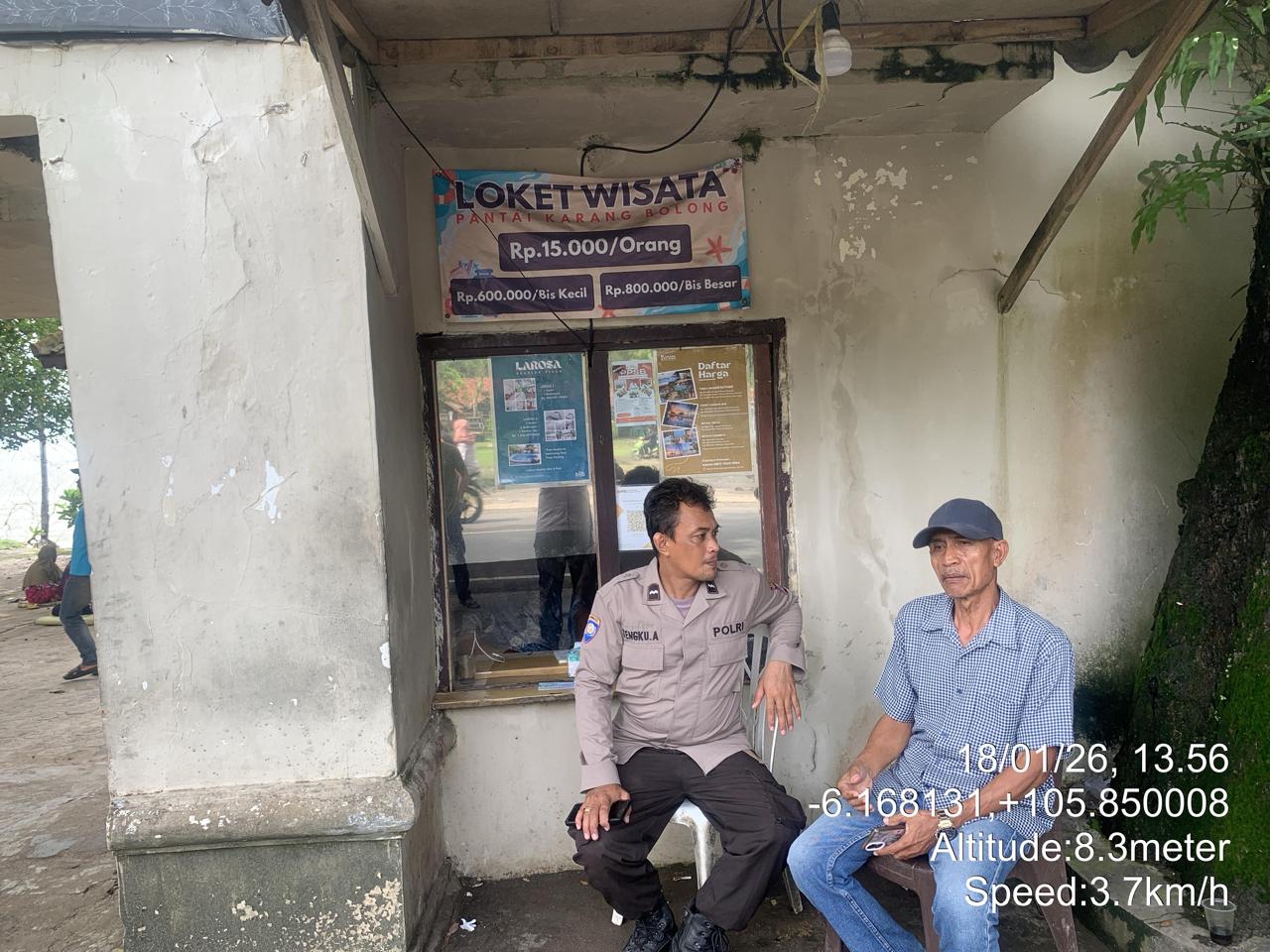 _*POLRES CILEGON*_ | Polsek Cinangka Polres Cilegon Polda Banten melaksanakan kegiatan patroli Serta memberikan Himbauan kepada pengunjung pantai yang berwisata dan Sambang kepada petugas penjaga pantai dan juga antisipasi harkamtibmas di Wilayah Hukum Polsek Cinangka Polres Cilegon Polda Banten, Minggu (18/01/2026).