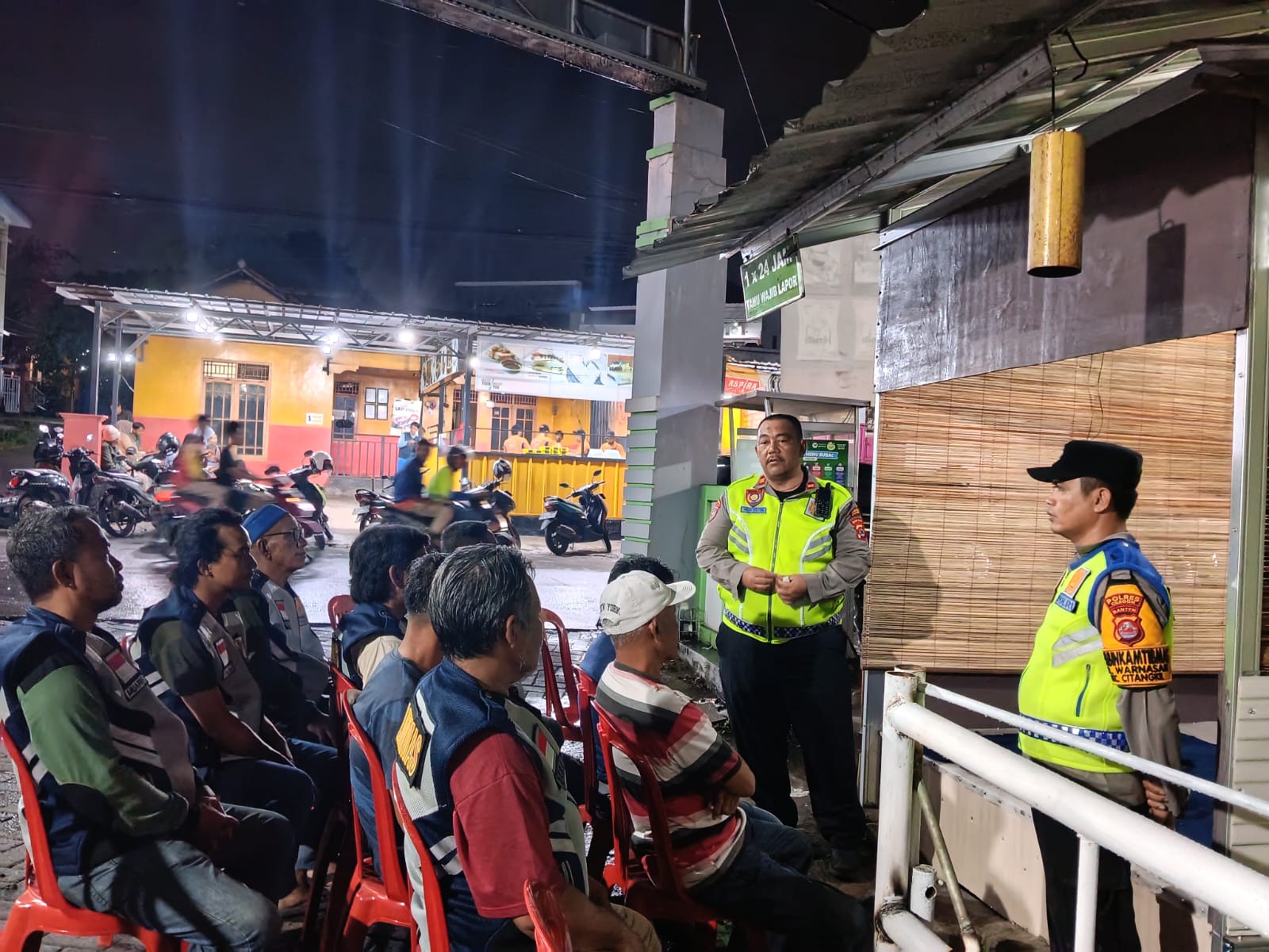 Tanpa mengenal waktu siang atau malam, IPTU Muhyidin memberikan pengarahan tegas sekaligus motivasi kepada warga, tokoh masyarakat, serta pengurus RT dan RW yang aktif menjaga keamanan lingkungan.