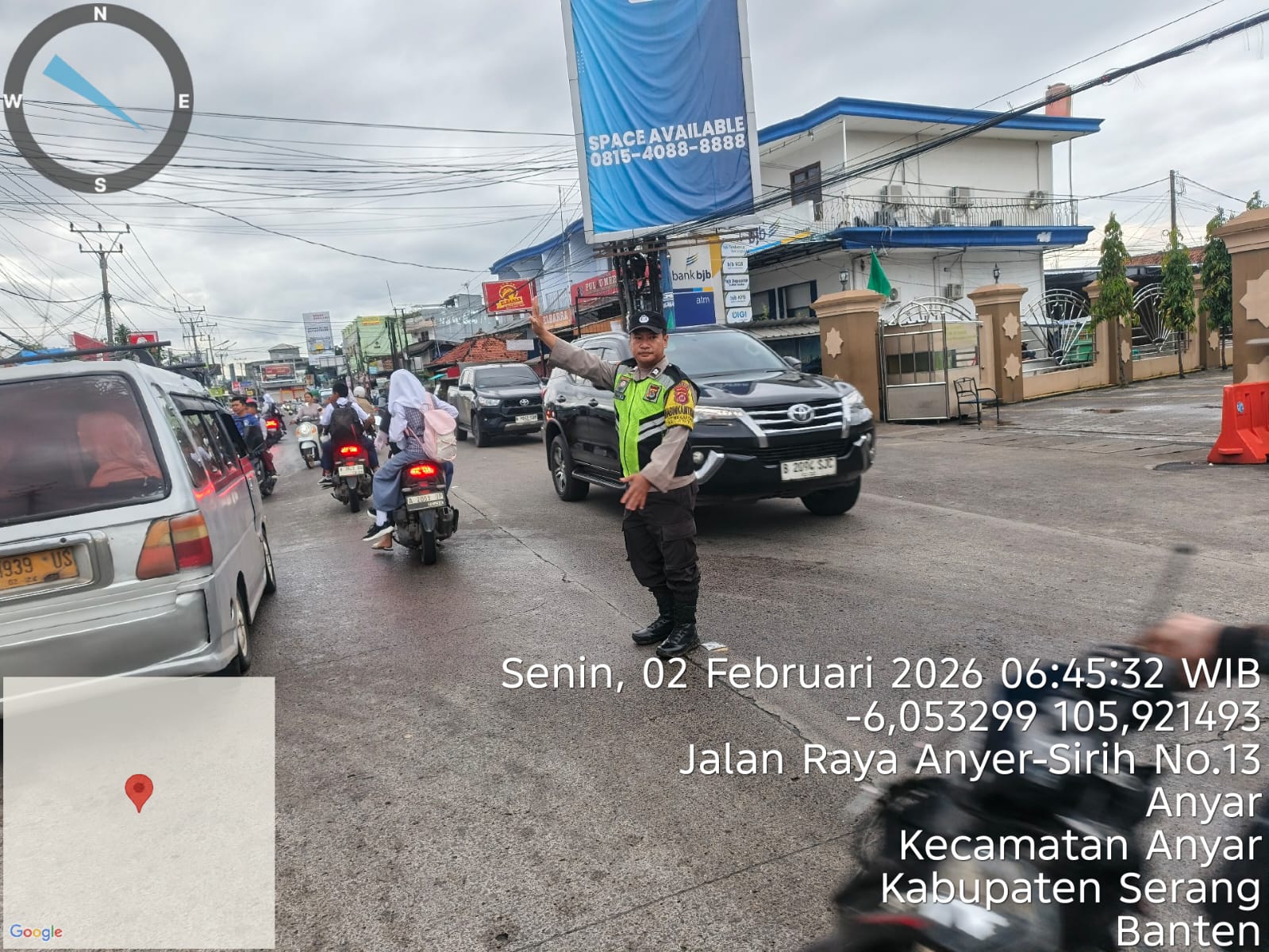Cilegon – Polres Cilegon Polda Banten, Dalam Mewujudkan Aksi Nyata Pelayanan Kepada Masyarakat, Personil Polsek Anyer Polres Cilegon Polda Banten Laksanakan Strong Point Pengaturan Lalu lintas, Senin (02/02/2026).