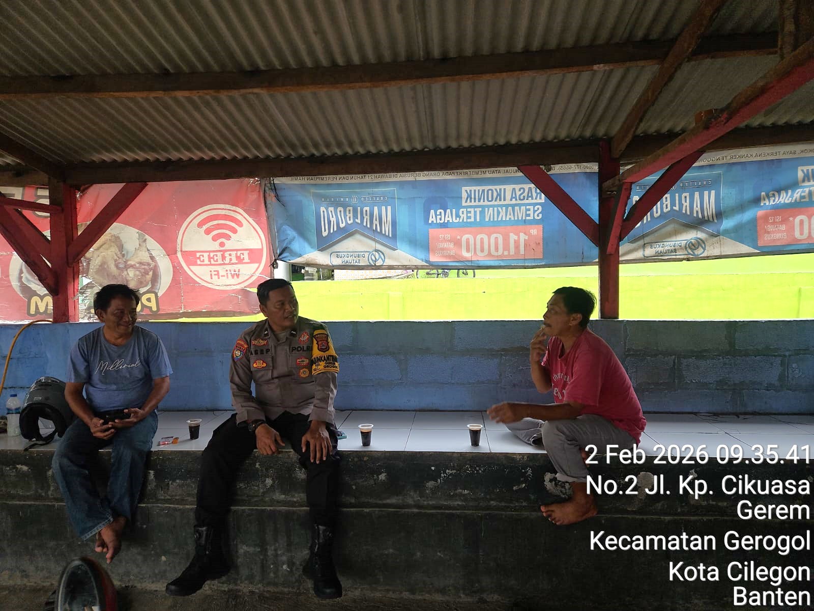 Cilegon - Polres Cilegon Polda Banten. Personil Bhabinkamtibmas Kelurahan Gerem Polsek Pulomerak AIPDA Asep Irmawan, Laksanakan Patroli dan Sambang Dialogis di Pangkalan Ojek Link. Kalibaru Rt.02/02 Kelurahan Gerem Kecamatan Gerogol Kota Cilegon. Senin (02/02/2026).