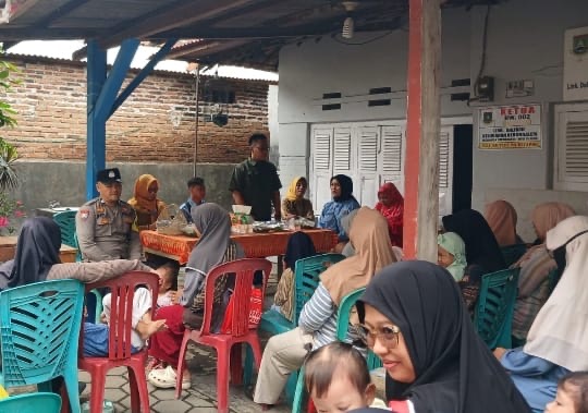 Bhabinkamtibmas Kelurahan Kebondalem Kecamatan Purwakarta Kota Cilegon, Aiptu Daryo.E dari Polsek Purwakarta Polres Cilegon, melakukan pemantauan terhadap kegiatan pembagian Menu Bantuan Gizi (MBG) untuk ibu hamil yang berlangsung di lingkungan Daliran