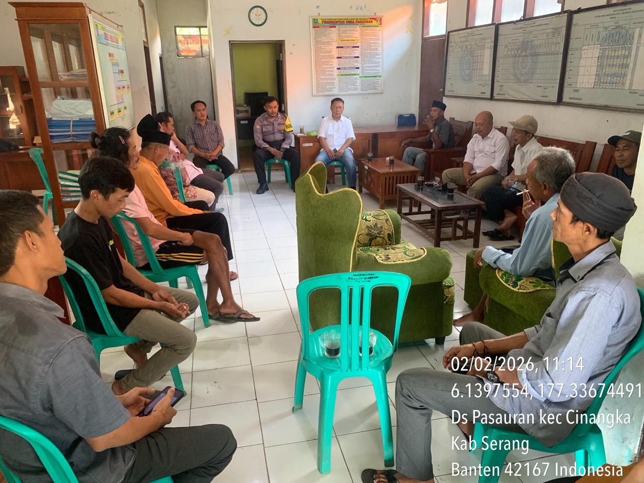 Kapolres Cilegon Polda Banten AKBP Martua Raja Taripar Laut Silitonga Melalui Kapolsek Cinangka Polres Cilegon Polda Banten AKP Rusnata Mengatakan kegiatan sambang ini rutin dilakukan oleh seorang babinkamtibmas di daerah binaannya setiap hari guna mendekatkan diri kepada masyarakat juga pesan-pesan kamtibmas diantaranya menghimbau kepada masyarakat agar meningkatkan kewaspasaan guna mencegah terjadinya tindak kriminal.