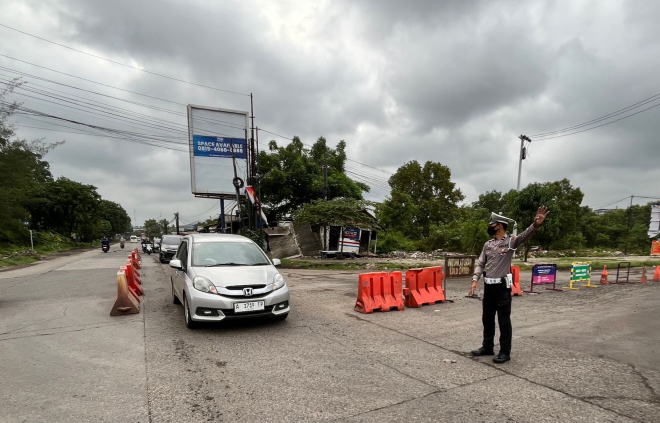 Polsek Ciwandan Laksanakan Pengaturan Arus Lalin di Simpang JLS Dan Beringin Ciwandan.