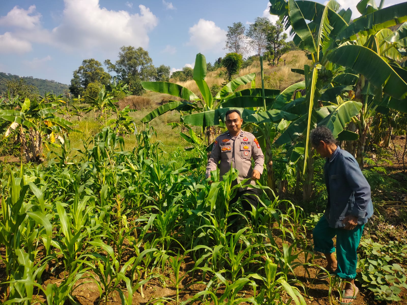 Pantau lahan jagung pok tani sinarjaya kecamatan.puloampel Ds. Mangunreja oleh Bhabinkamtibmas Polsek Puloampel