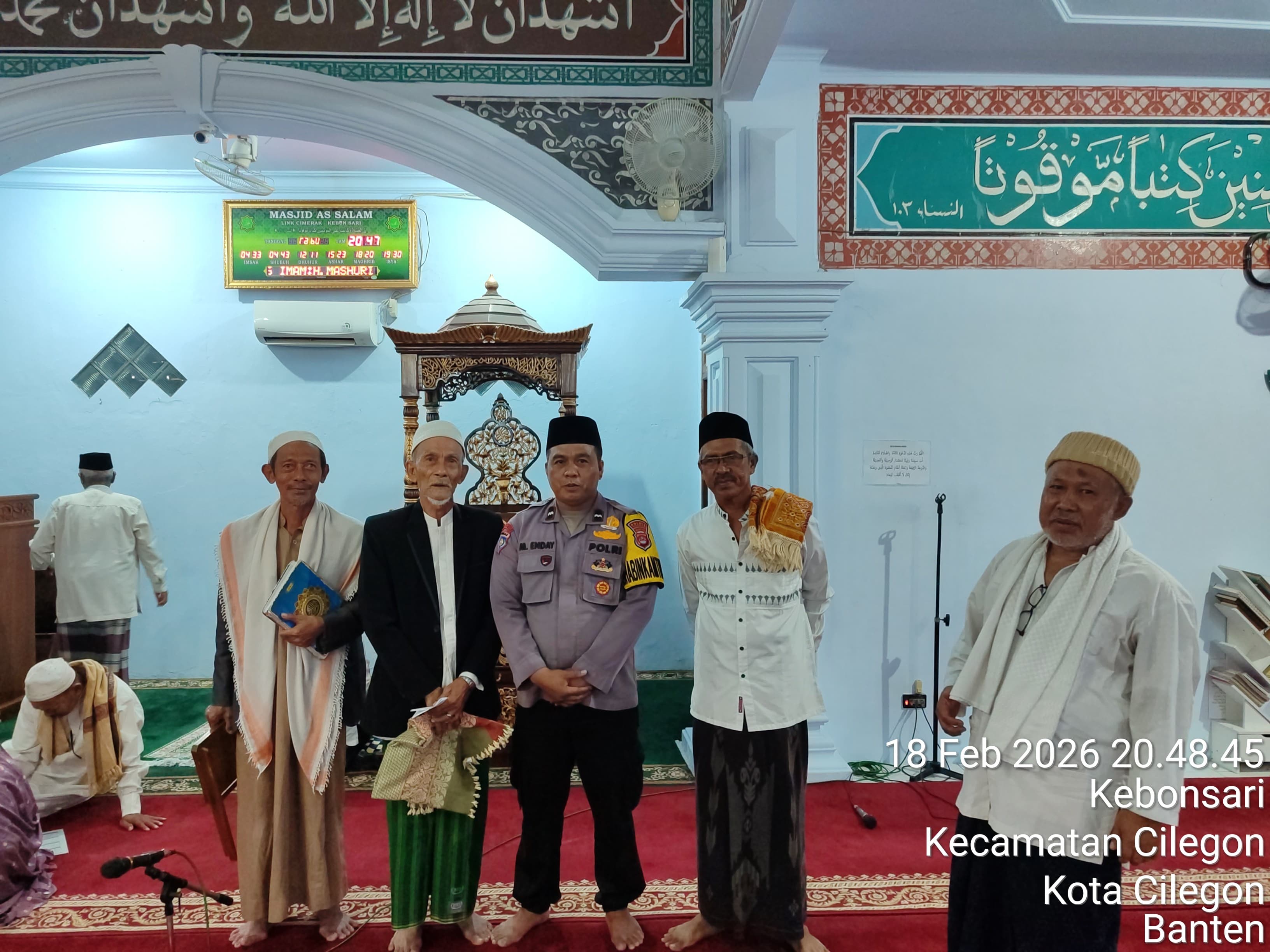 Cilegon - Bhabinkamtibmas polsek Ciwandan Polres Cilegon Polda Banten Silahturahmi Dan Tarawih Keliling Bersama warga Masyarakat lingkungan yang bertempat di masjid lingkungan binaannya, Kamis (19/02/2026).