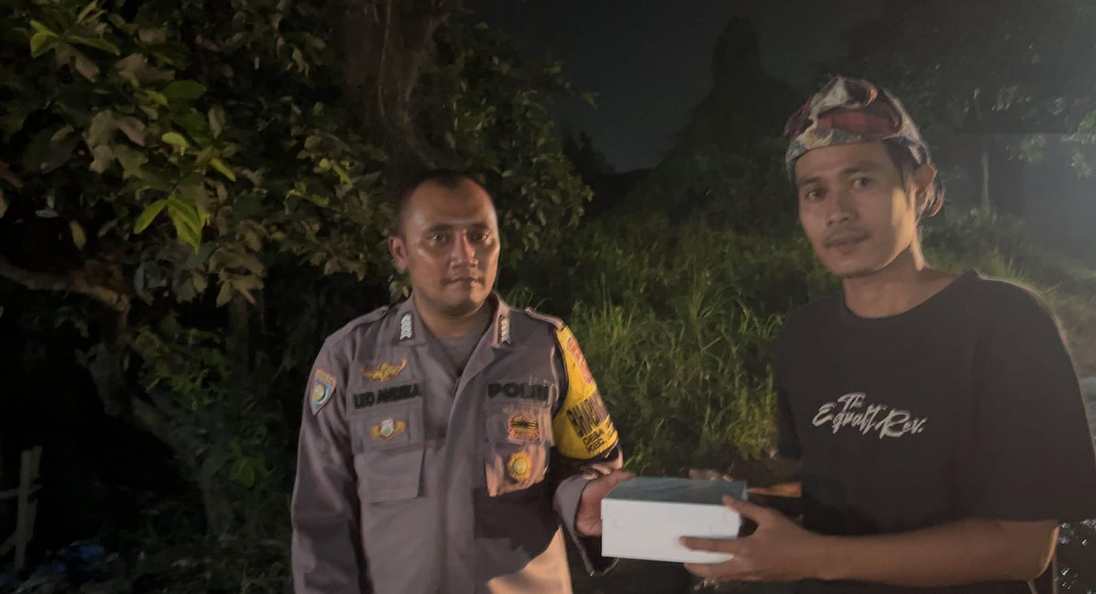 Bripka Leo A & Brigpol Chaeruman Bhabinkamtibmas Bagi Nasi Kotak Pada Sahur On the Road & Sosialisasi Call Center 110