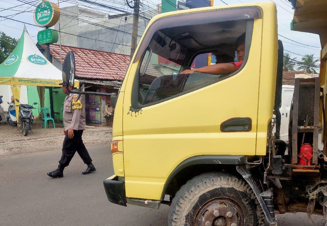Memberikan Pengaturan Lalu Lintas Polsek Anyar Agar Jalur Aman Dan Lancar
