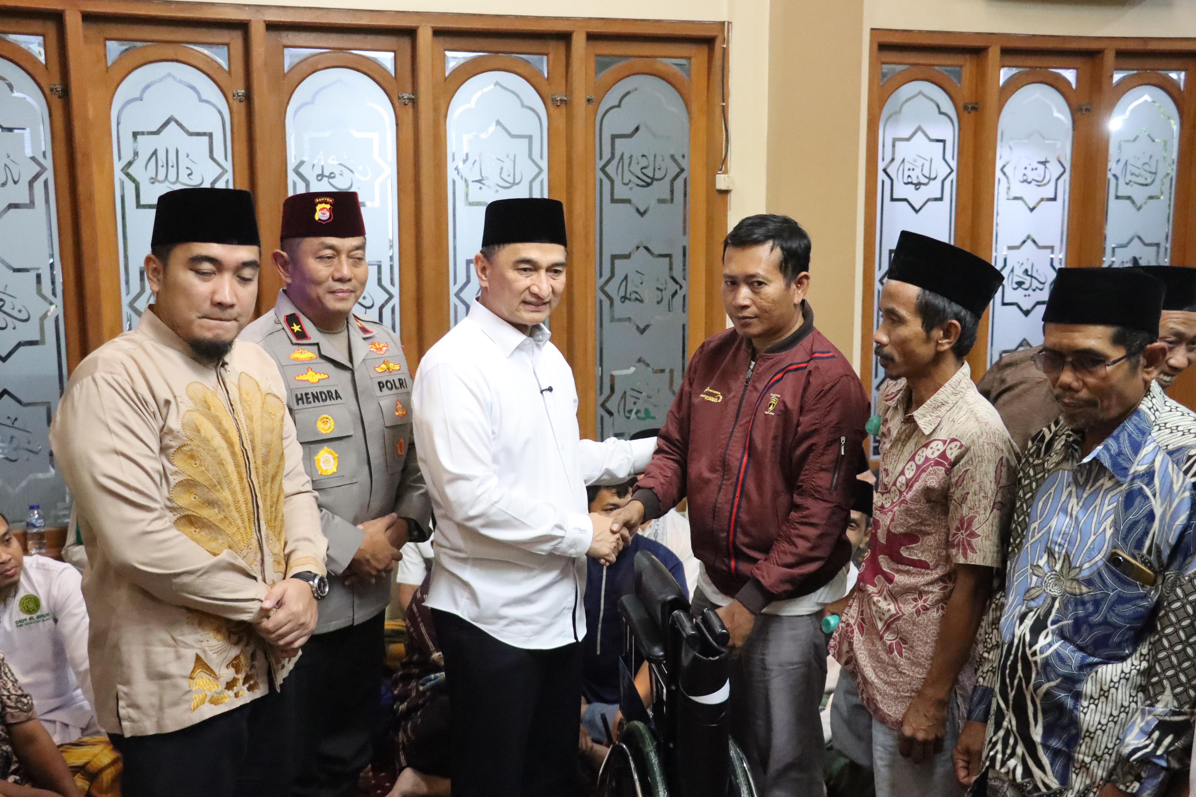 Sebagai wujud kepedulian sosial, kegiatan dilanjutkan dengan penyerahan bantuan secara simbolis dari Pemerintah Provinsi Banten, meliputi bantuan sarana dan prasarana masjid, kursi roda dan tongkat, bantuan pendidikan insidentil tingkat SLTA bagi delapan orang, bantuan bagi guru ngaji dan marbot, serta 100 paket sembako.