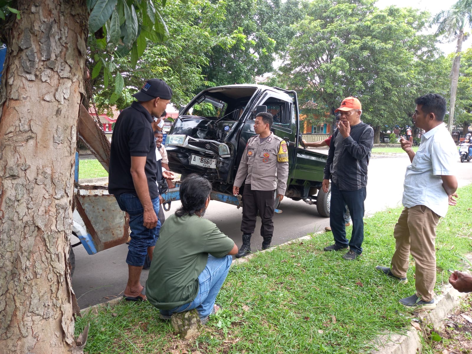 -Polres Cilegon-Polda Banten – Bhabinkamtibmas Kelurahan Kotabumi, Kecamatan Purwakarta Kota Cilegon, Bripka Agustoni, yang tengah melakukan kunjungan menyapa warga, langsung turut serta membantu evakuasi mobil losbak yang mengalami kecelakaan menabrak pohon di sekitar Perumahan Bukit Palm Hills. Acara tersebut berlangsung pada hari ini saat Bripka Agustoni sedang memantau kondisi kamtibmas dan berkomunikasi dengan masyarakat.Minggu.(01-03-2026).