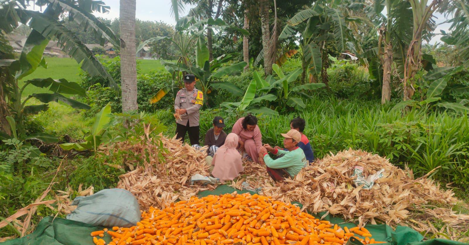 Personel Polsek Anyar Dampingi Kegiatan Panen Jagung Kelompok Tani