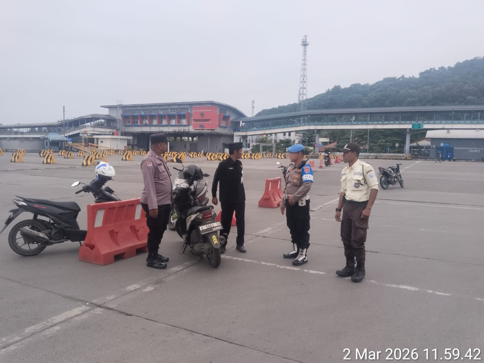 Cilegon – Polres Cilegon Polda Banten, Personel Polsek Kskp Merak Polres Cilegon melaksanakan sambang dan patroli kawasan pelabuhan merak dalam rangka menjaga Harkamtibmas di Kawasan Pelabuhan Merak, Senin (02/03/2026).