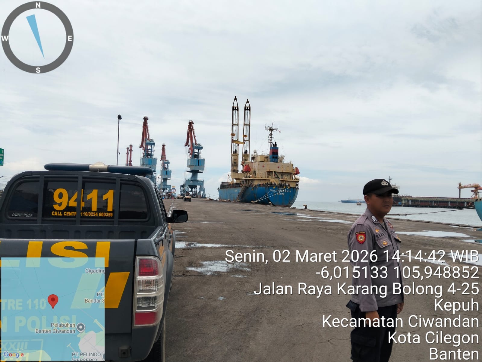 Cilegon – Polres Cilegon Polda Banten, Personel Polsek Kskp Banten Polres Cilegon melaksanakan sambang dan patroli kawasan pelabuhan dalam rangka menjaga Harkamtibmas di Kawasan Pelabuhan Darkum KSKP Banten, Senin (02/03/2026).
