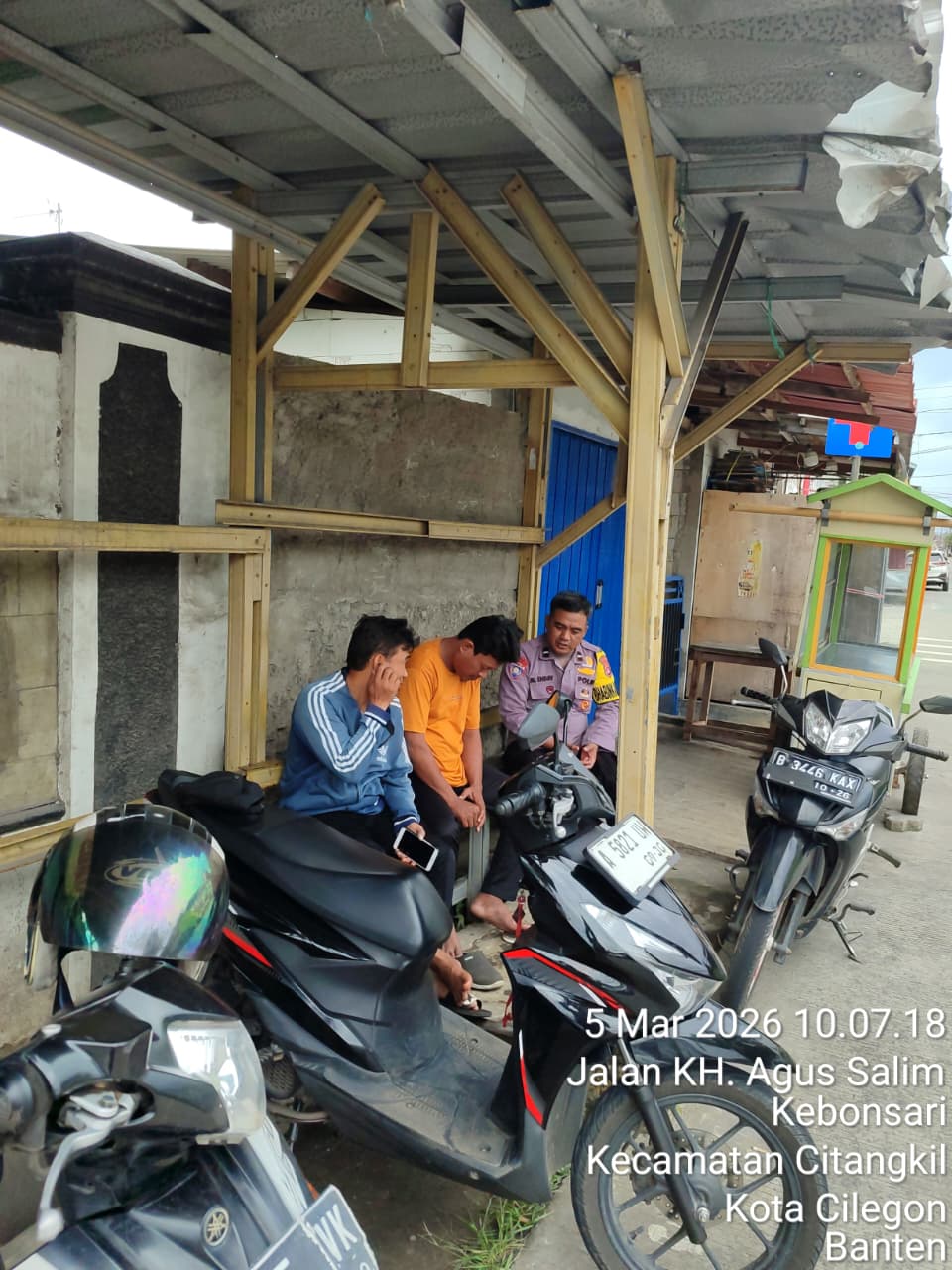 Cilegon - Guna mencegah gangguan kamtibmas, Personil Polsek Ciwandan Polres Cilegon Polda Banten melaksanakan giat Patroli dialogis dipangkalan Ojek (Opang) Pertigaan Simpang Warnasari Kelurahan Kebonsari kecamatan Citangkil, Kamis (05/03/2026).