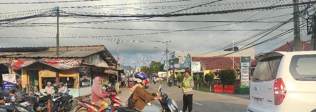 Anggota Polsek Anyar Pengaturan Lalu Lintas Agar Jalur Lancar dan Aman