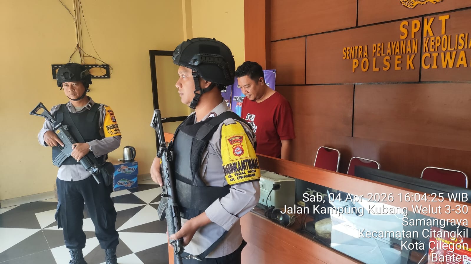 Cilegon - Guna mengantisipasi adanya potensi ancaman dan gangguan terhadap keamanan kantor maupun keselamatan personel piket jaga, Personil Polsek Ciwandan Polres Cilegon Polda Banten selalu tingkatkan kesiapsiagaan dan kewaspadaan dengan rutin menggelar kegiatan Sistem Pengamanan Mako (Sispam Mako), Sabtu (04/04/2026).