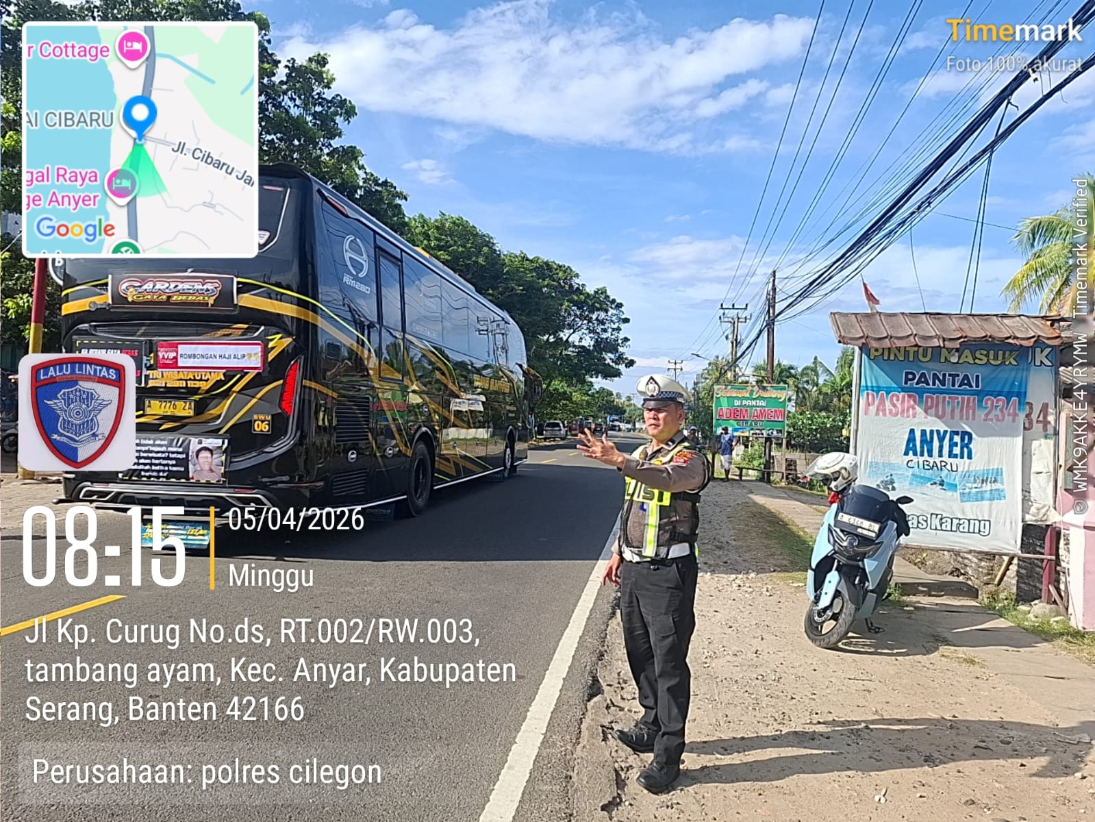 Cilegon - Polres Cilegon Polda Banten, Demi kelancaran arus lalu lintas jalur wisata yang berada di daerah hukum Polres Cilegon, Personil Polres Cilegon lakukan pengamanan dan pengaturan arus lalu lintas wisata Anyer - Cinangka, Minggu (05/04/2026).
