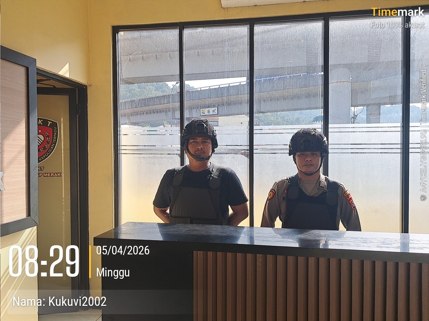 Cilegon - Personel piket jaga Polsek Kskp Merak Polres Cilgon Polda Banten melaksanakan siaga 1 Polsek pelaksanaan Sispam Mako oleh piket siaga dipimpin oleh Kspk Polsek Kskpy Merak Polres Cilegon Polda Banten, Minggu (05/04/2026).