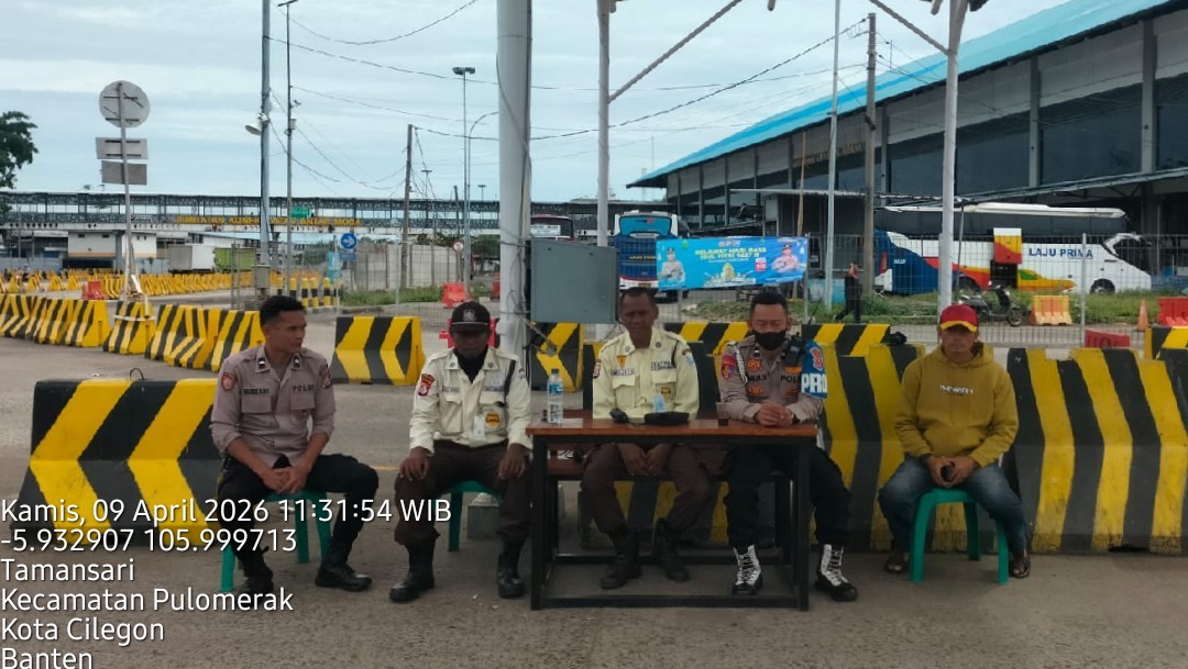 Cilegon - Personel Polsek Kskp Merak Polres Cilegon Polda Banten melaksanakan sambang dan patroli kawasan pelabuhan merak dalam rangka menjaga Harkamtibmas di Kawasan Pelabuhan Merak, Kamis (09/04/2026).