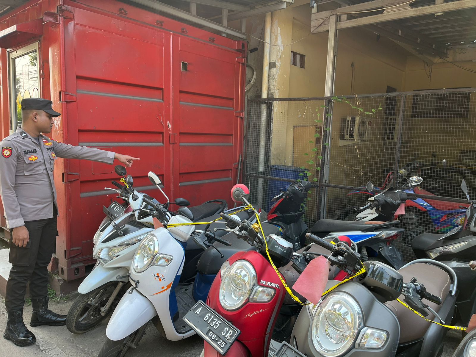 Cilegon, Polres Cilegon Polda Banten. Di gudang barang bukti Polres Cilegon. Anggota SatTahti polres cilegon mengecek barang bukti. (12/04/2026)