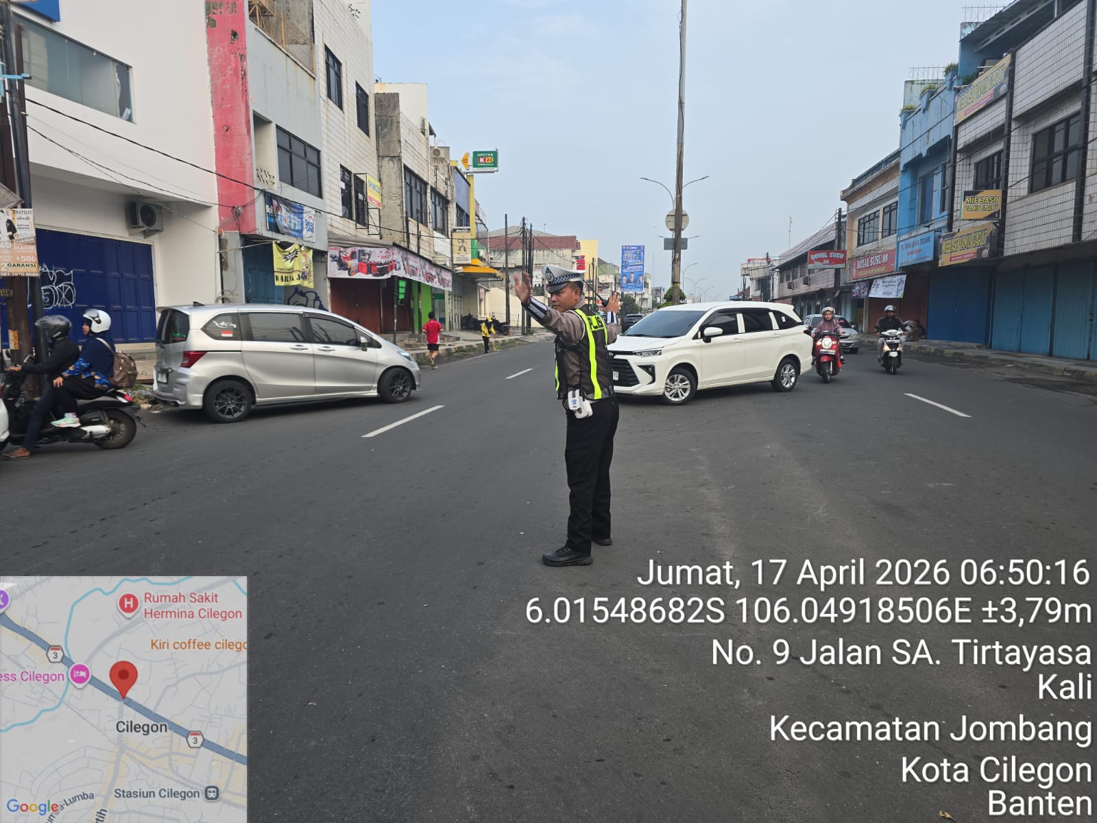 Cilegon, Satlantas Polres Cilegon Polda Banten – Berikan pelayanan kepada masyarakat Kasat lantas Polres Cilegon AKP Ridwan memerintahkan jajaran lalulintas untuk melaksanakan pengaturan lalu lintas di penggal – penggal jalan yang rawan kemacetan di Kota Cilegon, (Jumat,17/4/2026)