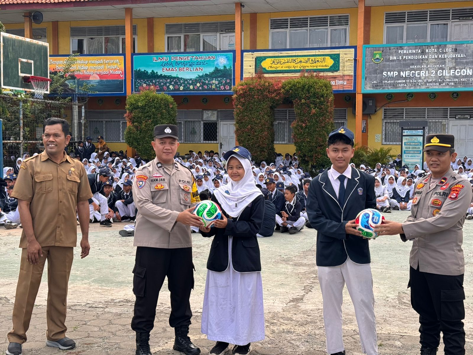 Cilegon ~ Satbinmas Polres Cilegon Polda Banten dipimpin oleh PS Kasatbinmas Polres Cilegon IPTU Muhyidin bersama dengan personel Satbinmas Polres Cilegon melaksanakan kegiatan Polisi Peduli Pendidikan dengan menjadi Pembina Upacara di SMPN 2 Cilegon, Senin (20/04/2026).